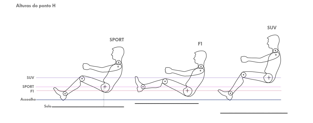 Quanto mais baixo for o ponto H mais esportivo o carro será, porém também o mais desconfortável para acesso e saída do veiculo.