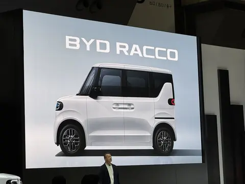 O BYD K-Car, projetado para o mercado japonês, foi visto antes de sua estreia oficial, que irá ocorrer na Feira de Mobilidade Japão (30/10 a 9/11), em Tóquio. O modelo, que até o momento era conhecido como BYD Light EV, será chamado de BYD Racco, como pôde ser visto durante uma coletiva de imprensa.