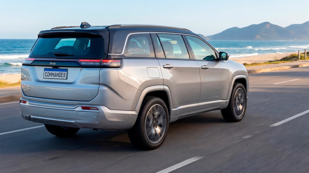 As versões Limited e Overland, recebem uma discreta plaqueta MHEV (Veículo Elétrico Híbrido Leve) no lado esquerdo da porta de carga