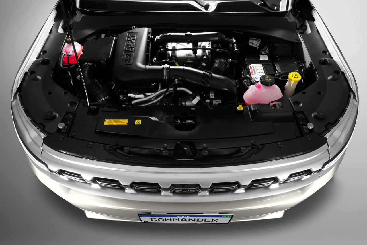 O Jeep Commander ainda segue com a motorização Multijet turbodiesel que entrega potência máxima de 200 cv a 3.500 rpm e torque máximo 45,9 m·kgf a 1.500 rpm, combinado ao câmbio automático de 9 marchas e tração integral na versão Overland.