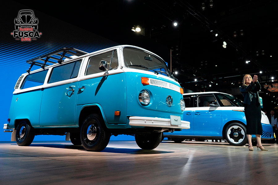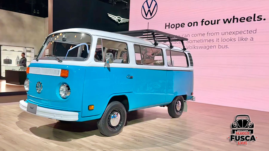 Um detalhe que não pode passar desapercebido na foto acima é que ambos, o “Azul” e o ID.BUZZ compartilham da mesma cor e no palco do Salão do Automóvel de Los Angeles de 2025 unem gerações num único espaço.