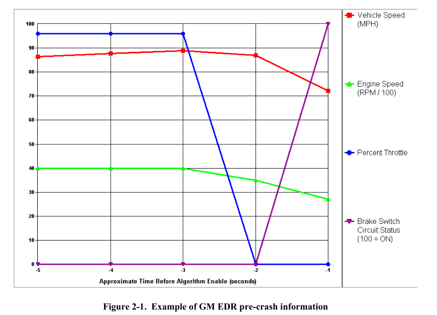 Nestes casos, apontava-se um erro de acionamento dos pedais pelo motorista, do pedal do acelerador ficar preso pelo tapete e, por fim, uma falha na peça do pedal do acelerador que levou ao recall desta peça pela Toyota. O conhecimento do público da existência deste recurso gerou uma pressão popular e de diversos setores por maior transparência, surgindo daí normas de padronização dos dados e, então passaram a ser vistos como importante ferramenta forense.
