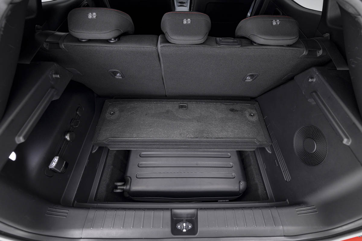 Apesar de suas dimensões externas compactas, o Ioniq 3 oferece um interior espaçoso para cinco passageiros. Essa receita é possível graças a longa distância entre-eixos e ao piso plano que proporcionam amplo espaço para as pernas e para a cabeça. O porta-malas comporta 322 litros, ao qual se somam os 119 litros do Megabox, um espaço de armazenamento adicional, oculto sob o piso do porta-malas.