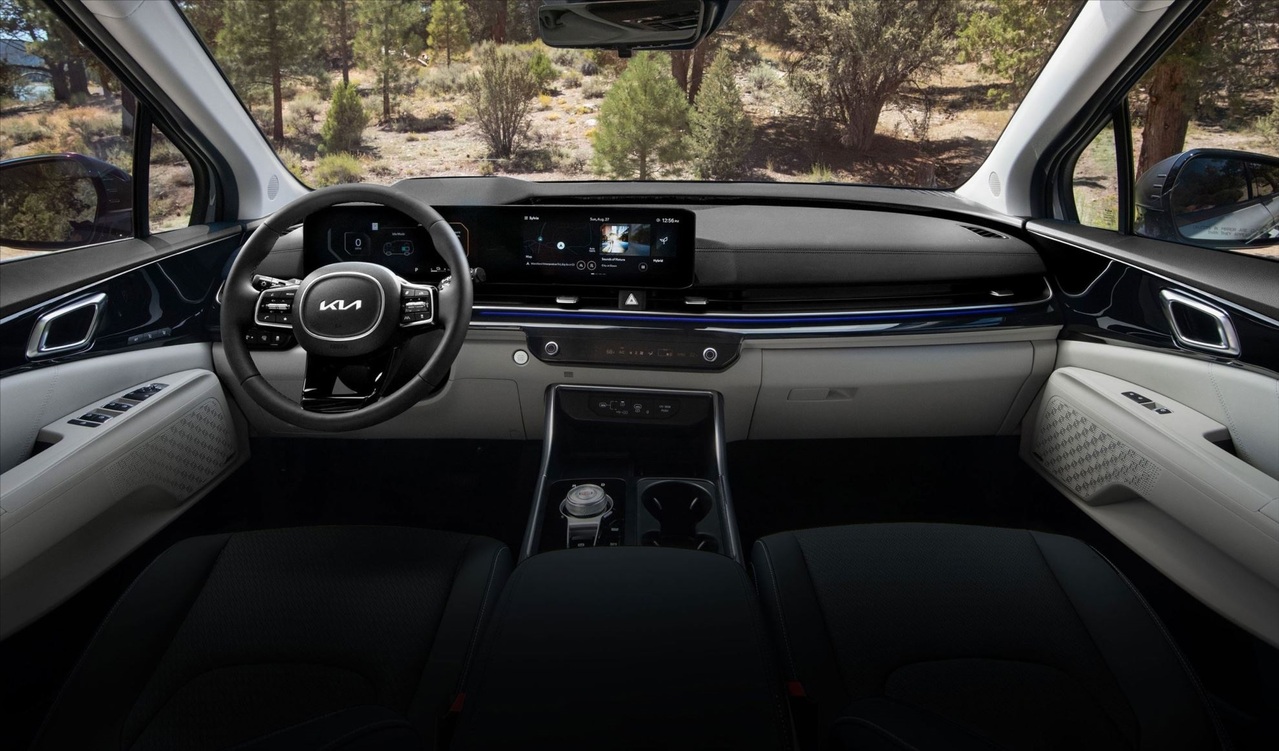 Na atualização de meio ciclo de vida, a Kia reviu os controles de climatização, agora os comandos podem ser comutáveis em tela tátil ou por botões físicos giratórios. A seleção de marchas é realizada por um comando giratório no console central. Ao lado encontra-se um porta-copos duplo de grande capacidade; o freio de estacionamento é eletromecânico.