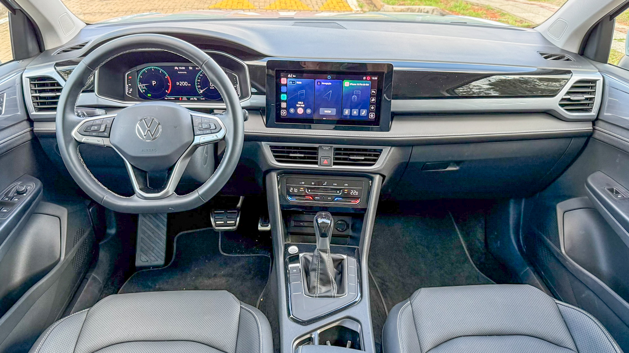 Na interface com o usuário, o conjunto também é atual, com central VW Play Connect de 10,1”, quadro de instrumentos digital de 10,25” e carregamento de bateria de celular por indução, compondo um ambiente tecnológico bem-resolvido, sem depender de soluções mais complexas para entregar funcionalidade relevante.