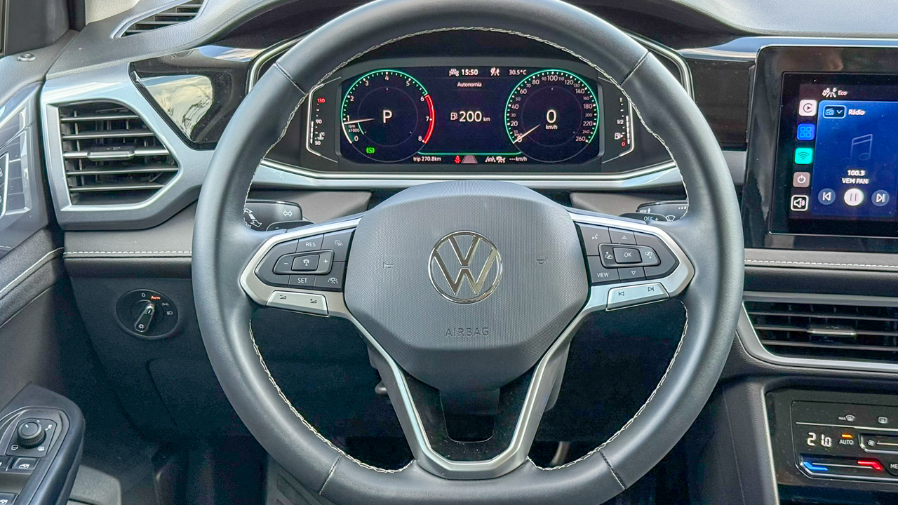O Taos Highline oferece um pacote de equipamentos competitivo, com bom nível de tecnologia, conforto e segurança. Os sistemas de assistência ao motorista estão bem integrados e funcionam de forma pouco intrusiva, algo nem sempre vistos entre concorrentes.